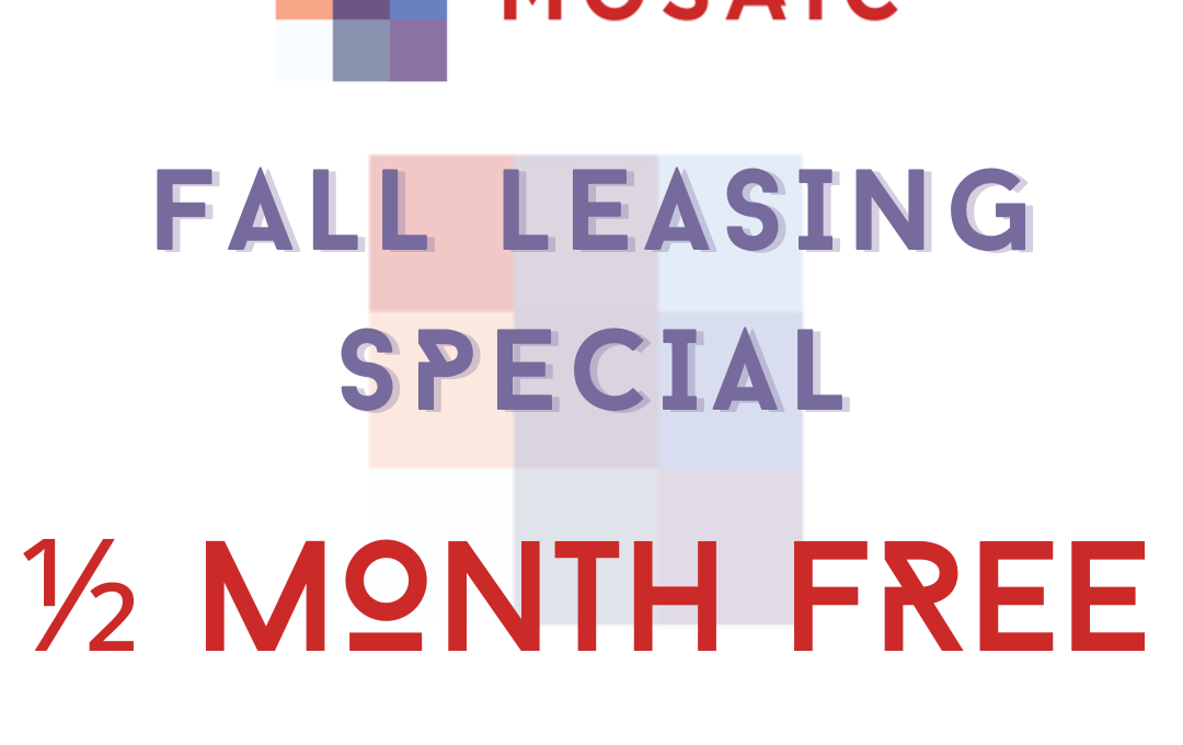 Come and take a tour the Mosaic apartments and see what we have to offer. We aim to find the apartment that best fits your needs and desires, whether you want a top floor apartment with a city view, or a pool walk out, we will find the best fit for you!